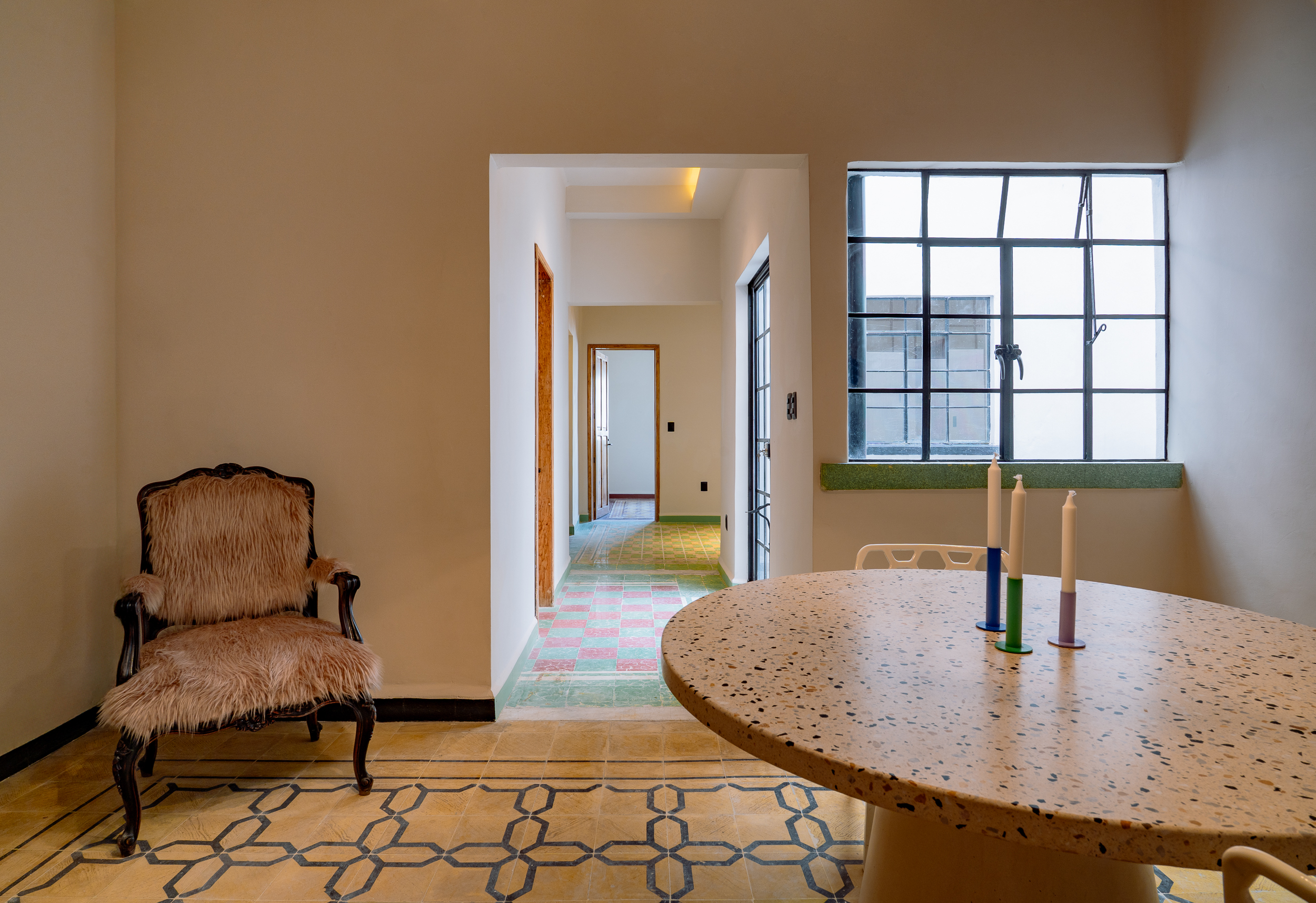 La propuesta arquitectónica nace con un claro propósito: devolverle al edificio su esencia multifamiliar. Se refuerzan muros con malla electrosoldada y se revitalizan losas en azotea con nuevas varillas, como un gesto de cuidado hacia su estructura original. El proyecto recupera su vocación como hogar: de los 21 departamentos y 15 locales originales, se evoluciona hacia 33 departamentos distribuidos en tres niveles —11 por piso— y 13 locales comerciales en planta baja, en sintonía con la vida urbana actual. Cada departamento ha sido diseñado pensando en la luz, el aire y la diversidad de quienes habitarán estos espacios: unidades de una, dos o tres recámaras, todas con ventilación e iluminación natural, cocina integral, sala-comedor y baño completo; algunas con medio baño adicional. Este proyecto no solo reconstruye un edificio: rescata su espíritu, lo adapta al presente y lo proyecta hacia el futuro como una opción de vivienda accesible, consciente y necesaria para revitalizar el corazón de la ciudad.